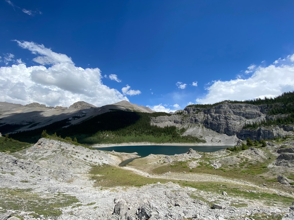 On our last full day we decided to take a day trip out to Lake Og. If you hike in via the Sunshine Village trailhead you will pass this lake on your way to Magog. It is about a 10km roundtrip with virtually no elevation from Magog, making it a quick and easy day trip if you’re looking for something to do. Unfortunately for us, this is where our luck had finally run out in regards to the weather. The forecast called for scattered showers throughout the day, which would have been fine as we don’t mind getting a little wet on our hikes. However, that rain quickly turned into a hail storm which was unideal to say the least.