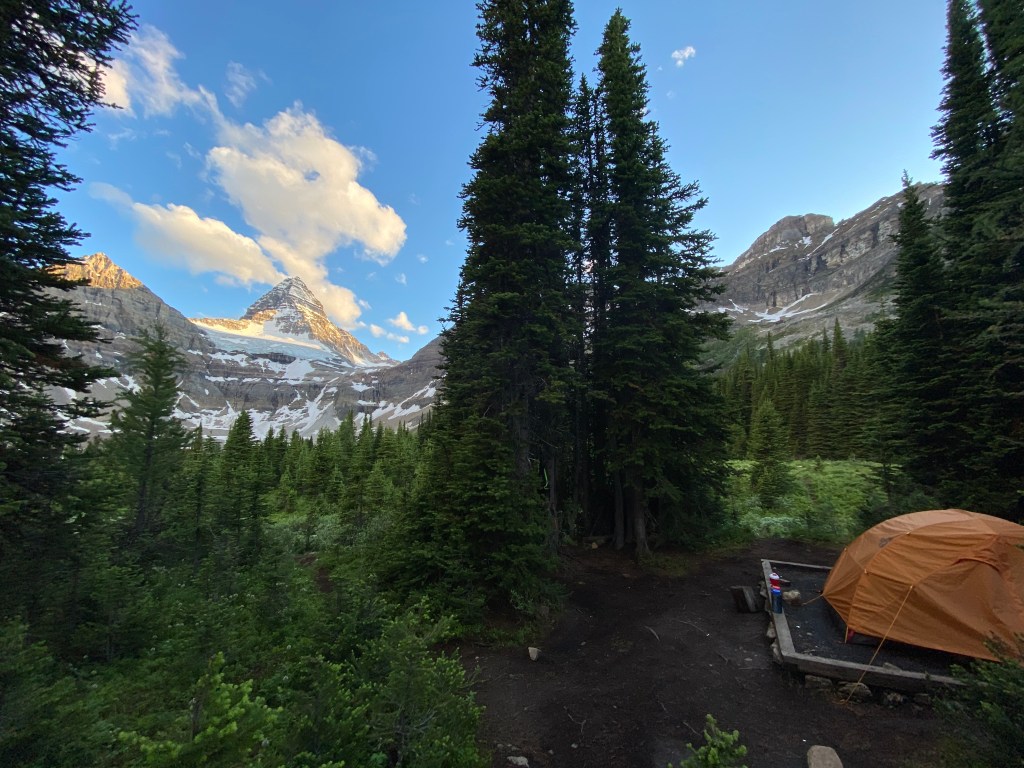 While we spent all three nights at Lake Magog camping, anybody visiting the park has the option to stay at the Naiset Huts or the Hind Hut, operated through the Assiniboine Lodge. The fee for the huts is currently $20/night and they are operated by the lodge (this is owned by a private company but you can find more information on the BC Parks website). The Assiniboine Lodge also hosts a happy hour/tea time daily, but unfortunately for us it is closed this year due to Covid (another reason to go back one day!). While there are so many different options to consider when planning your trip to Mount Assiniboine one thing I can guarantee for sure is that you will not be disappointed!